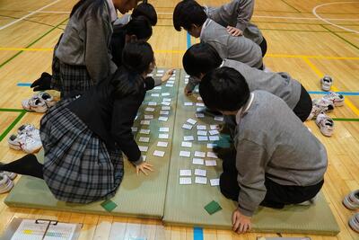 2月4日(火)、6校時の総合的な学習の時間を使って百人一首大会が行われました。上の句を読まれた段階で札をとる生徒もおり、白熱した試合が繰り広げられていました。