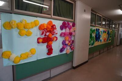 区展に出ていた書道が学校に戻ってきて展示されています。