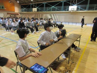 メインは、VRを活用した自転車安全で、自転車目線からも、自動車運転手目線からもVRで体験しました。VRのリアルさに生徒も驚きながら楽しく学ぶことができました。