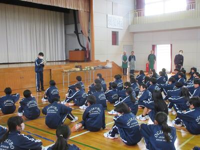 2月14日(金)、小学生が来校して部活動を体験しました。今回は美術部・吹奏楽部を体験し、サッカー・バレー・バスケットボール部を見学しました。