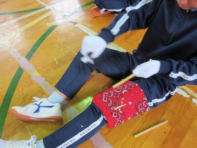 そんな歴史ある場所で、生徒たちはマイ箸作り、ブルーベリージャム作りを行いました。スローガンの「皆で協力して団結力を高めよう」の通り、全員が途中で投げ出すことなく最後まで協力して体験活動を行いました。入学し立ての1年生ですが、笑顔の目立つ1日となりました。