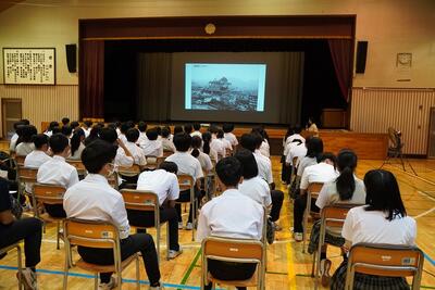 7月10日(木)、3年生が平和学習として原爆の脅威や戦争の悲惨さ、平和を希求する心の大切さなどを学びました。