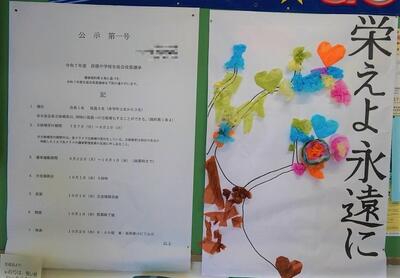 また、生徒会の提案で、公示のとなりには『不思議な木の絵』が貼り出されました。ここには生徒たちが、花や葉などを自由に作り貼り出すことかできます。今日早速3年生と教員が、自作の花やハート型の葉を貼り出していました。