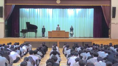 校長先生からは、「日々生徒皆さんの成長を感じている。これからさらに成長していくためには、失敗を恐れず様々なことに挑戦してほしい。生徒一人ひとりの挑戦を回りがからかうのではなく、応援する風土をつくっていきましょう。」といったお話がありました。