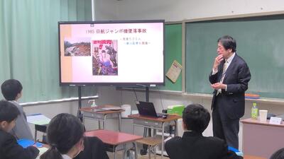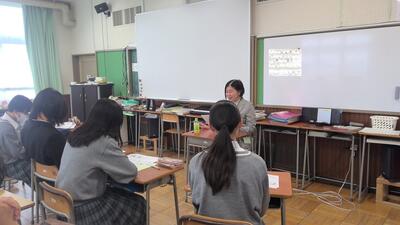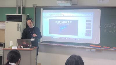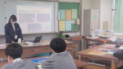 これは、学校支援委員会「おぎすけ」が、地域の方々にお願いし、中学生にご自分の職業について講話していただくというキャリア教育の一環です。