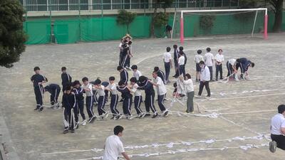 4月17日 3年運動会練習 投稿: 学校ICT担当 (15:00) 本日は、暑くもなく寒くもなく、外で運動するには最適な気候でした。 荻窪中学校では、5月30日(土)の運動会に向けて、早くも練習が始まっています。3学年では、学年種目のムカデ練習を行ったり、長縄跳び練習を行ったりと生徒が主体となって練習を行いました。 -