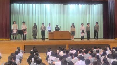 4月20日 生徒会組織認証式 投稿: 学校ICT担当 (17:12) 本日は、前期生徒会組織の認証式がありました。生徒会長より、各専門委員長へ認証状が手渡されました。 各専門委員会では、生徒が自治的活動を行えるよう、毎月の活動内容について会議の場を設けています。それぞれが役割を全うできるよう、頑張ってほしいと願います。 荻窪中学校がより良い場所となるよう、応援しています。 -